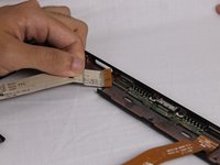To remove the second ribbon cable you must first raise a black retainer with a thin plastic tool. Then you must pull the cable down to free it from the frame.