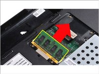 Use your fingertips to carefully spread apart the securing clips on each end of the first memory module connector until the first module pops up.