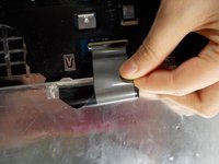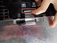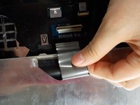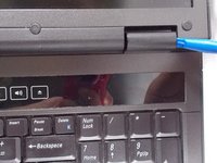 Use the plastic opening tool to loosen the plastic hinge cover that is located above the keyboard.