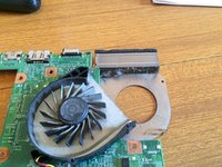 Turn the motherboard and remove the fan in the direction shown.