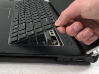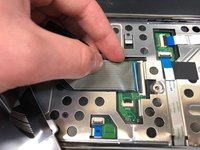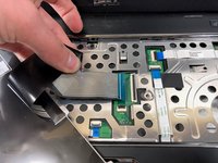 • Lift the black tab on the keyboard cable connector upwards to release the cable.