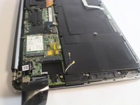 Use a plastic iFixit opening tool to remove the two wires connected to the wireless card.