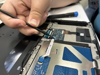 Flip up the black ZIF locking flap that secures the touchpad ribbon cable.