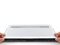 • Reinsert your opening pick under the aluminum cover at the front edge of the laptop.