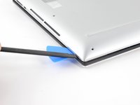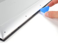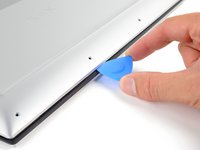 • Insert an opening pick between the bottom-left corner of the aluminum back cover and the chassis.