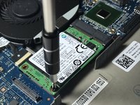 Using a Phillips #0 screwdriver, remove two 2.5mm screws that secure the SSD to the chassis.