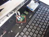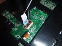Unhook the cables connected to the mouse pad by flipping up the black tabs that hold either cable in place.