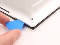 Insert an opening pick at the bottom left corner, between the lower case and the chassis.