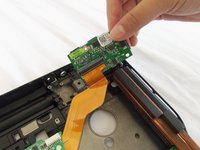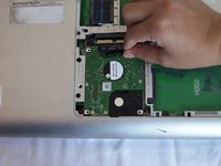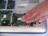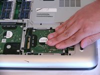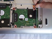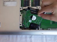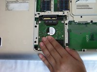 Slide the hard drive with your hand towards the hole where the back panel assembly screw was located (in step 5) to disconnect it.