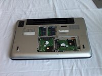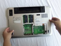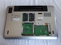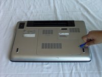 Flip over the laptop so that the bottom battery compartment faces upwards.