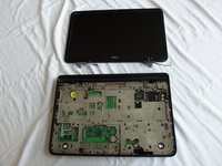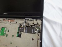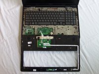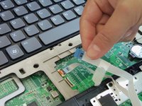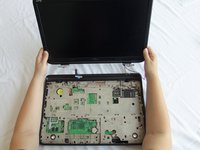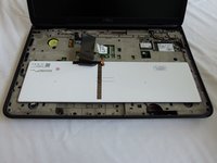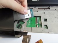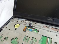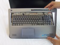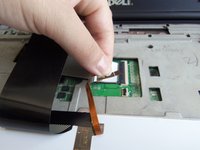 Gently lift and rotate the palm rest panel until it's upside down as it is still connected by the mouse pad wires.