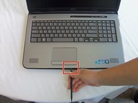 Open the laptop to about a 90 degree angle and place it on its side with the empty optical drive slot pointing upwards.