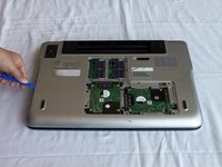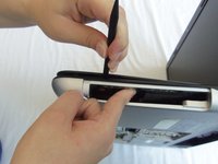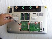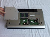 Unscrew three 4mm screws near the edge of the optical drive compartment with a Phillips screwdriver.