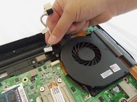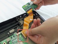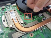 Remove the orange cable from the motherboard by gently pulling away from the connection point.