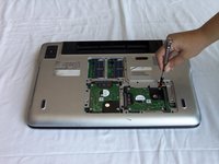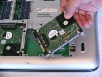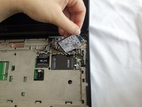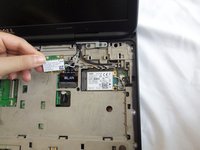 Unscrew the 4mm screw from the WLAN card with a Phillips screwdriver. The card will lift itself after you remove the 4mm screw.