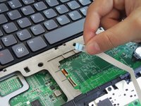 Using the plastic opening tool, slightly lift and rotate the keyboard until it's upside down from the display side of the laptop.