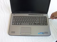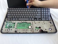 Unscrew four the 8mm screws directly under the keyboard with a Phillips screwdriver.
