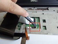 Gently insert the spudger below the edge of the black tab of the thin, copper colored cable and pry it open.
