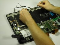 Disconnect the screen and copper colored motherboard cables and tuck them under the device to prevent future hassle.
