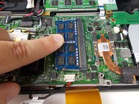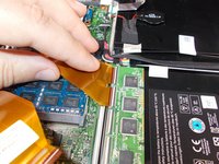 To access the mSATA and RAM slots we have to unclip the touch display cables and remove a plastic insulating sheet. It's easier than it sounds!