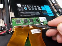 To access the mSATA and RAM slots we have to unclip the touch display cables and remove a plastic insulating sheet. It's easier than it sounds!