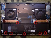 Unscrew the 7 PH1 screws retaining the battery.