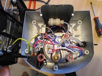 [back view] Once you remove the clear water tank, you can unscrew the two bottom screws (marked in green) and the two upper screws(marked in red) that will allow us to remove the metallic upper lid later on.