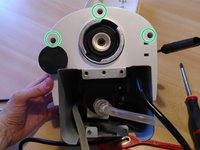 Once you removed the bottom part, you can start to remove the lid. From the bottom unscrew 3 screw (marked in green)