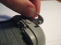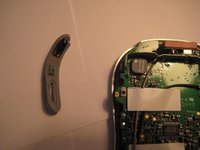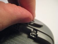 Remove the button cover on the back of the device by prying it up with a spudger or your thumb nail.