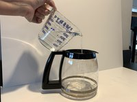 Pour the liquid into the coffee maker's water reservoir.