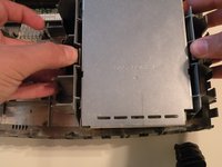 En la parte trasera de la fuente de alimentación hay una pestaña que también debe ser presionada para quitar completamente la fuente de alimentación. Puedes entonces quitarla por completo. Puede ser necesario un tirón firme para separar el conector de alimentación.