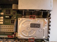 El disco duro: Un Quantum ProDrive LPS, hecho en 1990, y sorprendentemente, aún funciona.