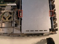Para quitar la fuente de alimentación, aprieta estas dos pestañas y levanta el frontal.