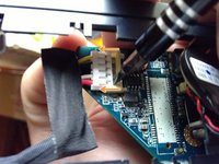 remover cable de la esquina inferior derecha en la parte de abajo de la laptop