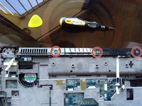 remover 2 tornillos debajo del teclado, en la esquina inferior izquierda