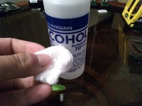 usa alcohol isopropílico al 70% o más, usa un algodón o papel absorbente y mójala en el alcohol