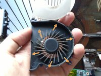 usa un cepillo de dientes o una brocha pequeña y suave para remover el polvo. ADVERTENCIA: las aspas son muy frágiles, no presionarlas fuerte ni con los dedos