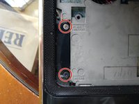 remueve los altavoces y los 2 tornillos que sostienen la pantalla en el lado derecho