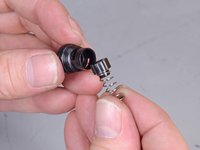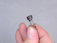 Slide the cap and spring, cap first, into the opening on the screw fitting to complete the new regulator internals.