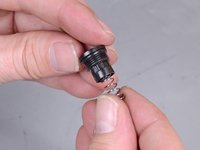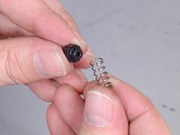 Seat the narrow end of the new cap into one end of the new spring.