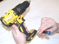 Grab the drill in one hand and cup the battery (located at the bottom of the drill) with the other hand.