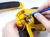 Remove three 19 mm T20 Torx screws from the back of the drill.