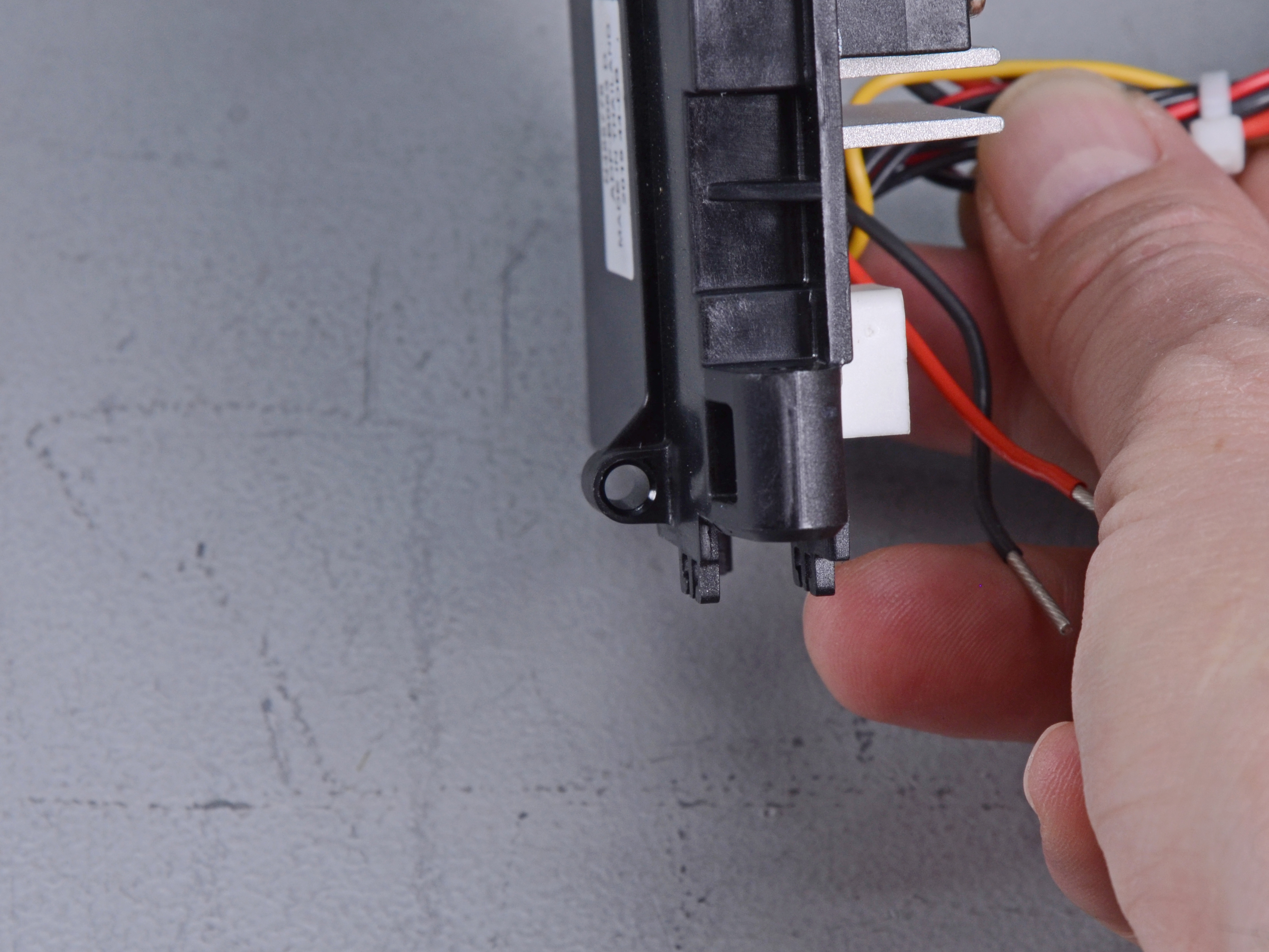 Use wire snips to cut the small black cable tie securing the four main board wires together.