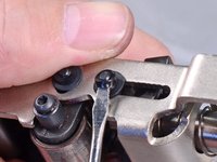 Use a flathead screwdriver to pry off the rubber stopper securing the plunger pin.