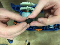 Lock the motor with a screwdriver to be able to unscrew the centre screw, you will not be able to get there without blocking the gear.
