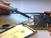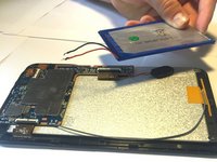 Lay the device down and notice that the speaker will be attached to the back cover with a wire. Carefully lift the speaker upward from the back cover and place it near the battery.