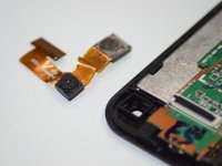 Remove the front-facing camera by sliding it out of its slot in the corner of the device using an opening tool.