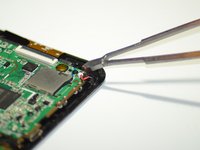 Slide the small, circular microphone out of its slot in the bottom left corner of the device using an opening tool.