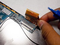 Insert the plastic opening tool to pop up the ZIF connector holding the ribbon cable down.