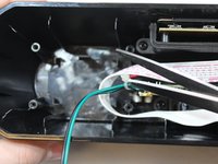 Cut zip-ties wrapped around red and green wires using scissors or pliers.